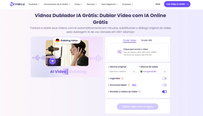 #1. Vidnoz Criador de Sincronização Labial IA Gratuito Online