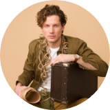 Vista de perfil com pouca iluminação, segurando um objeto.