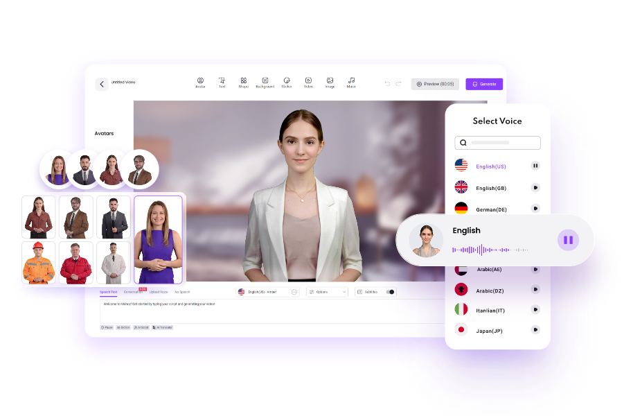 Use o melhor gerador de vídeos IA para criar vídeos com qualidade de estúdio em apenas um minuto.