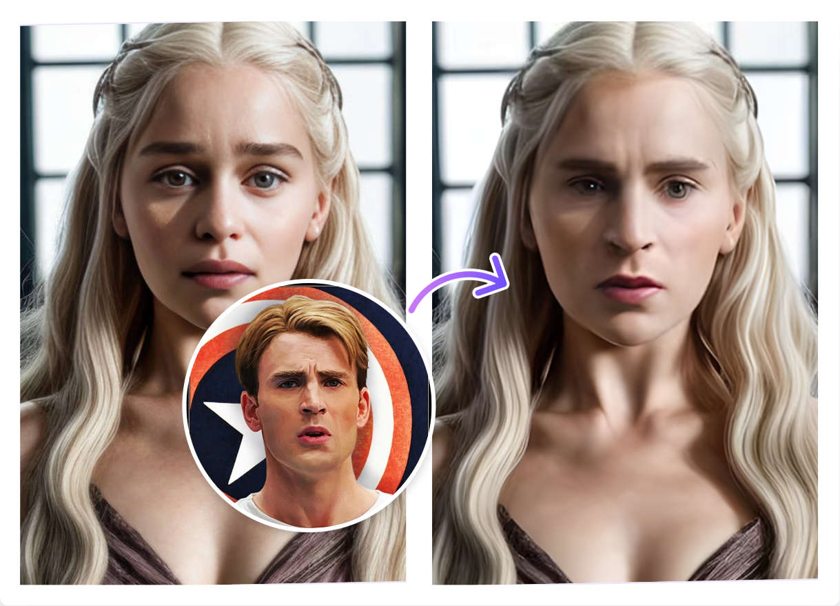 Carregue suas fotos para trocar rosto. Seja quem você quiser ser e ganhe rostos IA 100% realistas em apenas minutos!